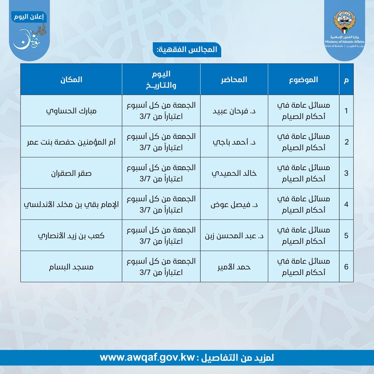 المجالس الفقهية في مساجد محافظة الجهراء خلال شهر رمضان المبارك ١٤٤٦ هـ - ٢٠٢٥م