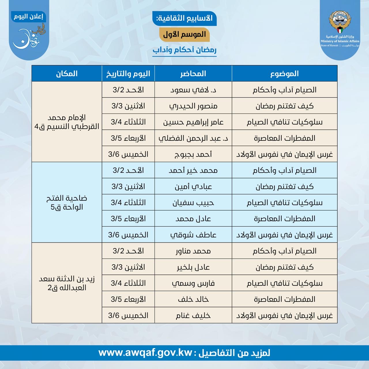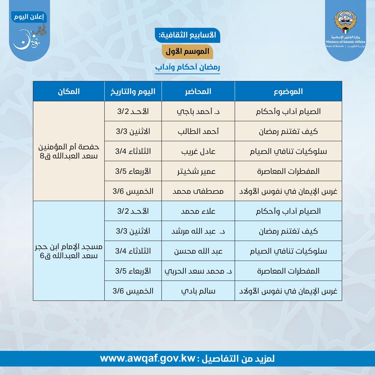 النشاط الثقافي لإدارة مساجد محافظة الجهراء خلال شهر رمضان المبارك ١٤٤٦ هـ - ٢٠٢٥م