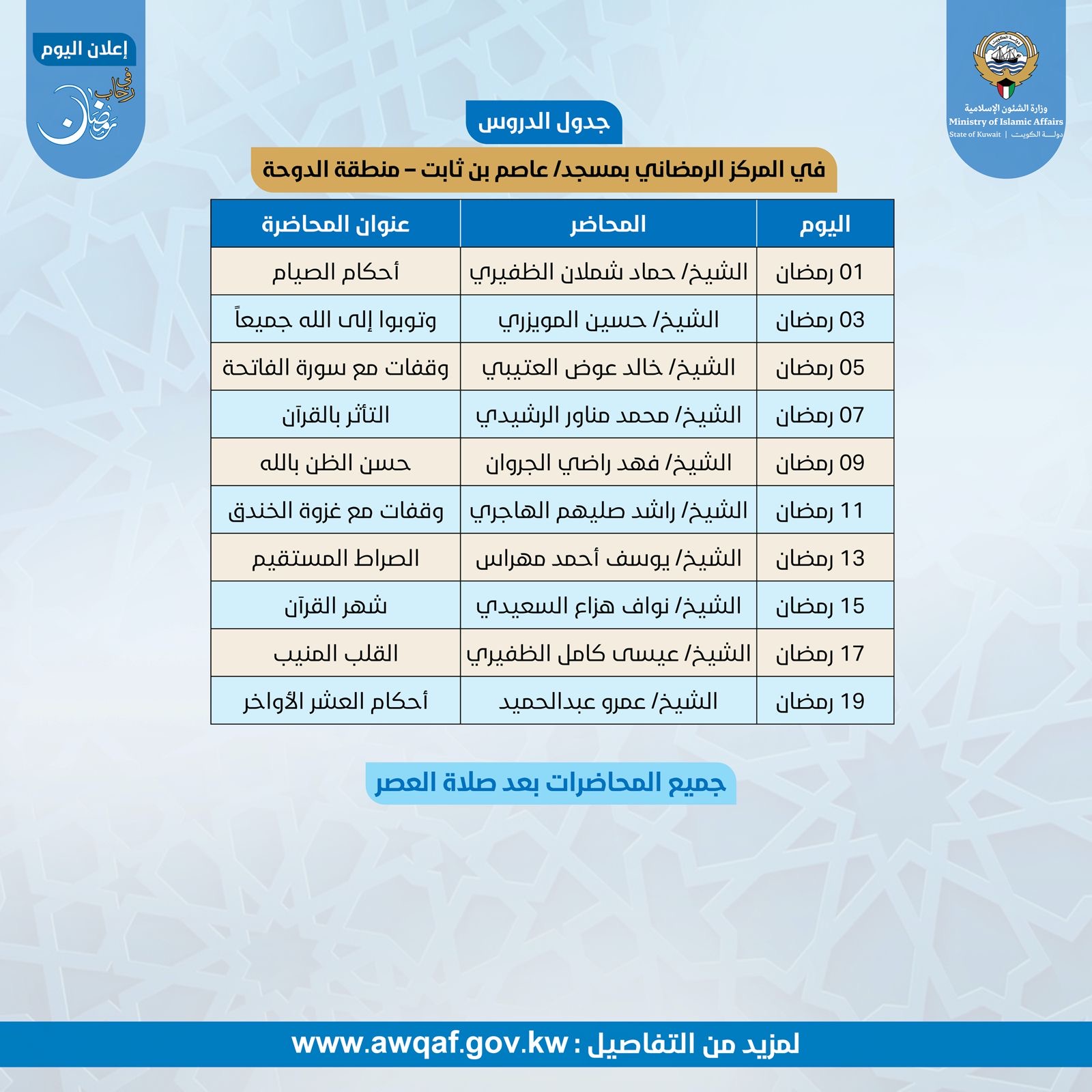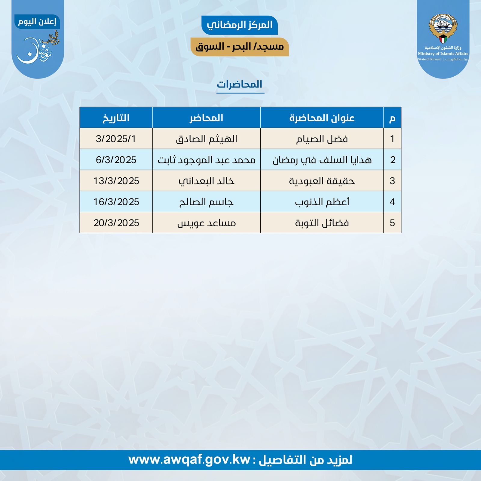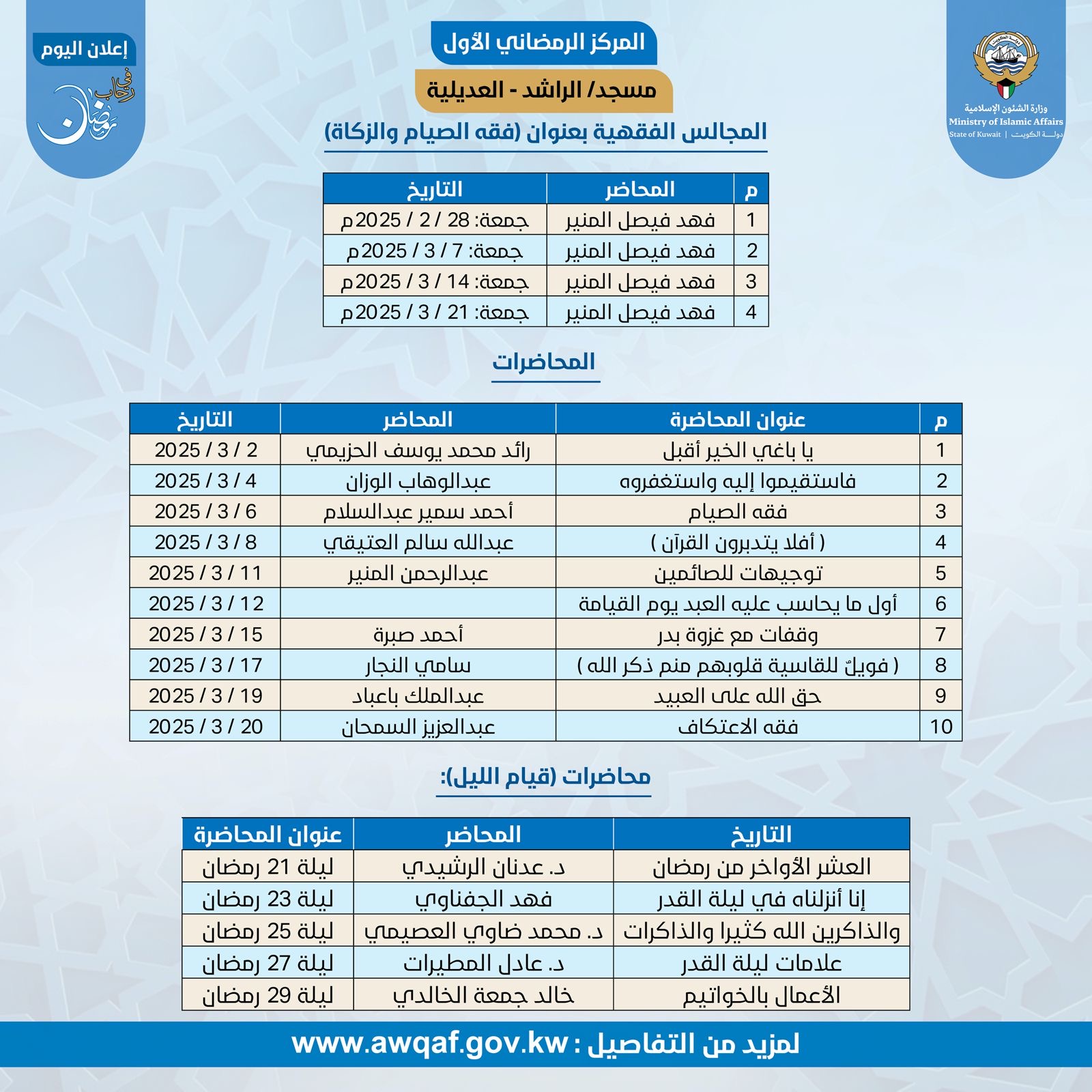 النشاط الثقافي لإدارة مساجد محافظة العاصمة خلال شهر رمضان المبارك ١٤٤٦ هـ - ٢٠٢٥م