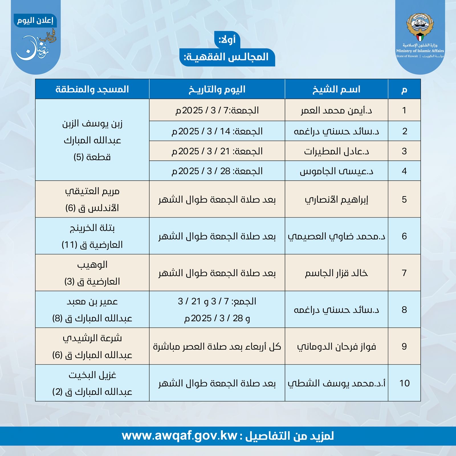 النشاط الثقافي لإدارة مساجد محافظة الفروانية خلال شهر رمضان المبارك ١٤٤٦ هـ - ٢٠٢٥م