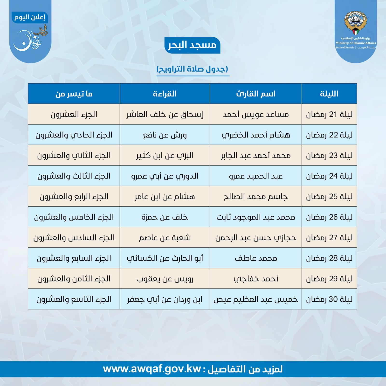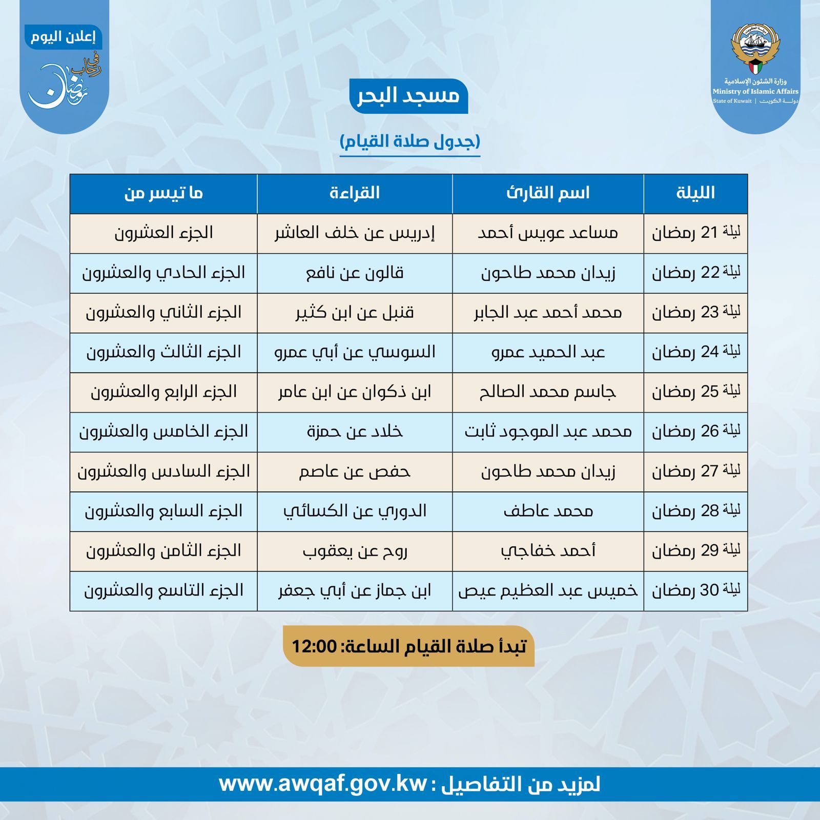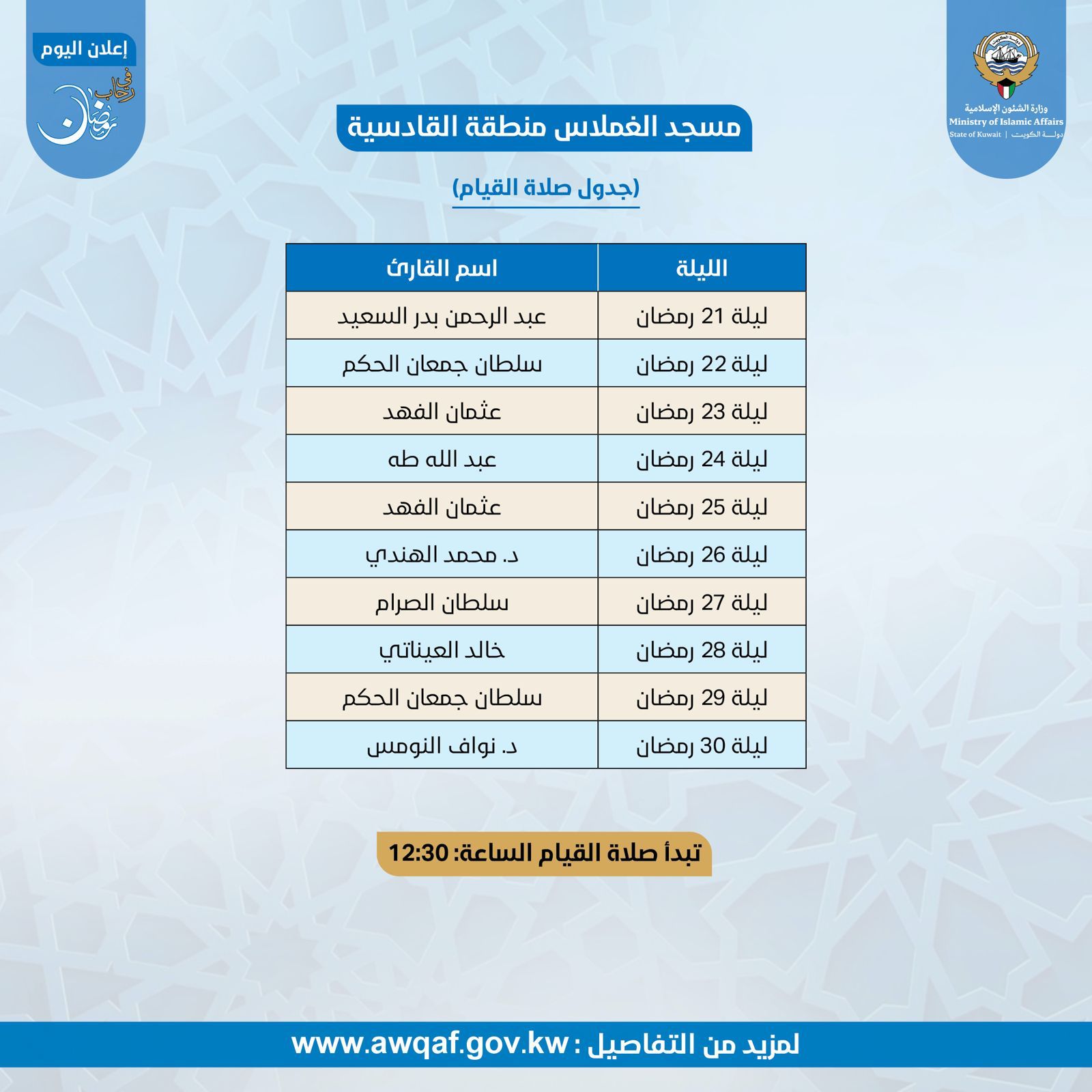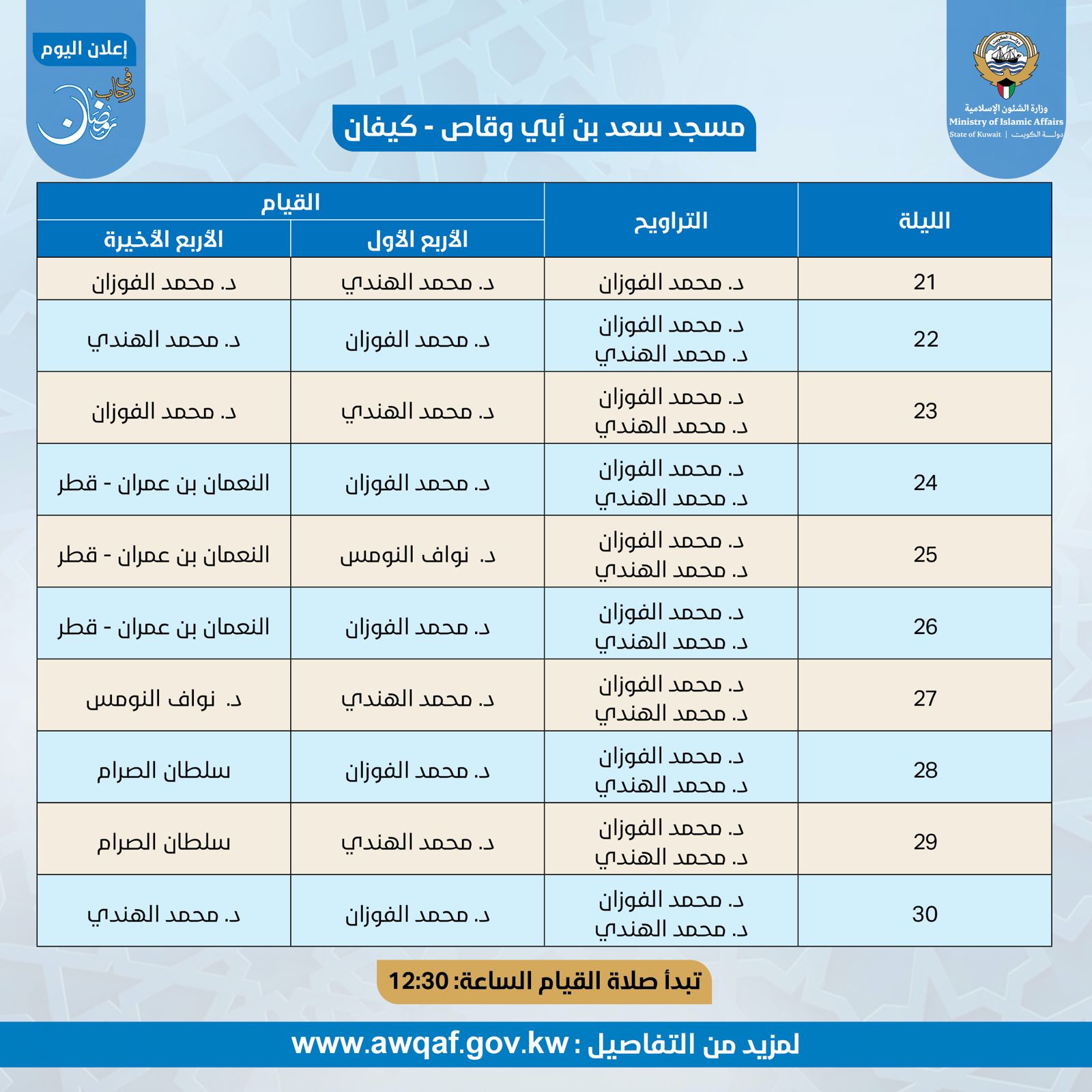 قراء صلاة التراويح والقيام في مساجد محافظة العاصمة خلال العشر الأواخر من شهر رمضان المبارك ١٤٤٦ هـ - ٢٠٢٥م