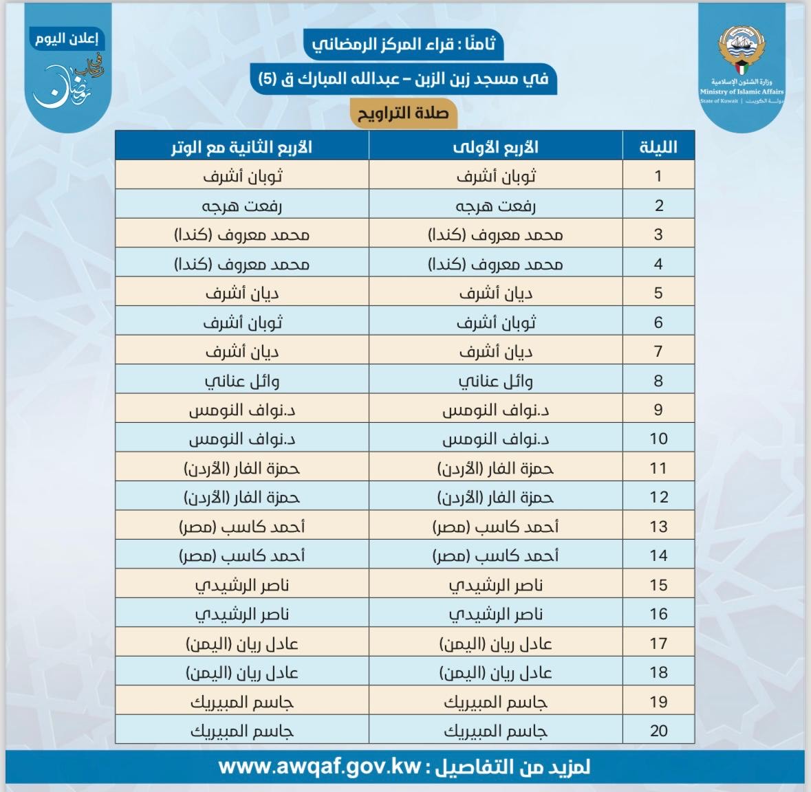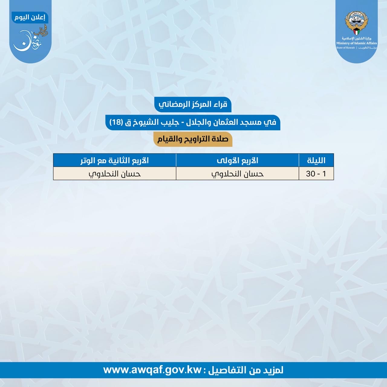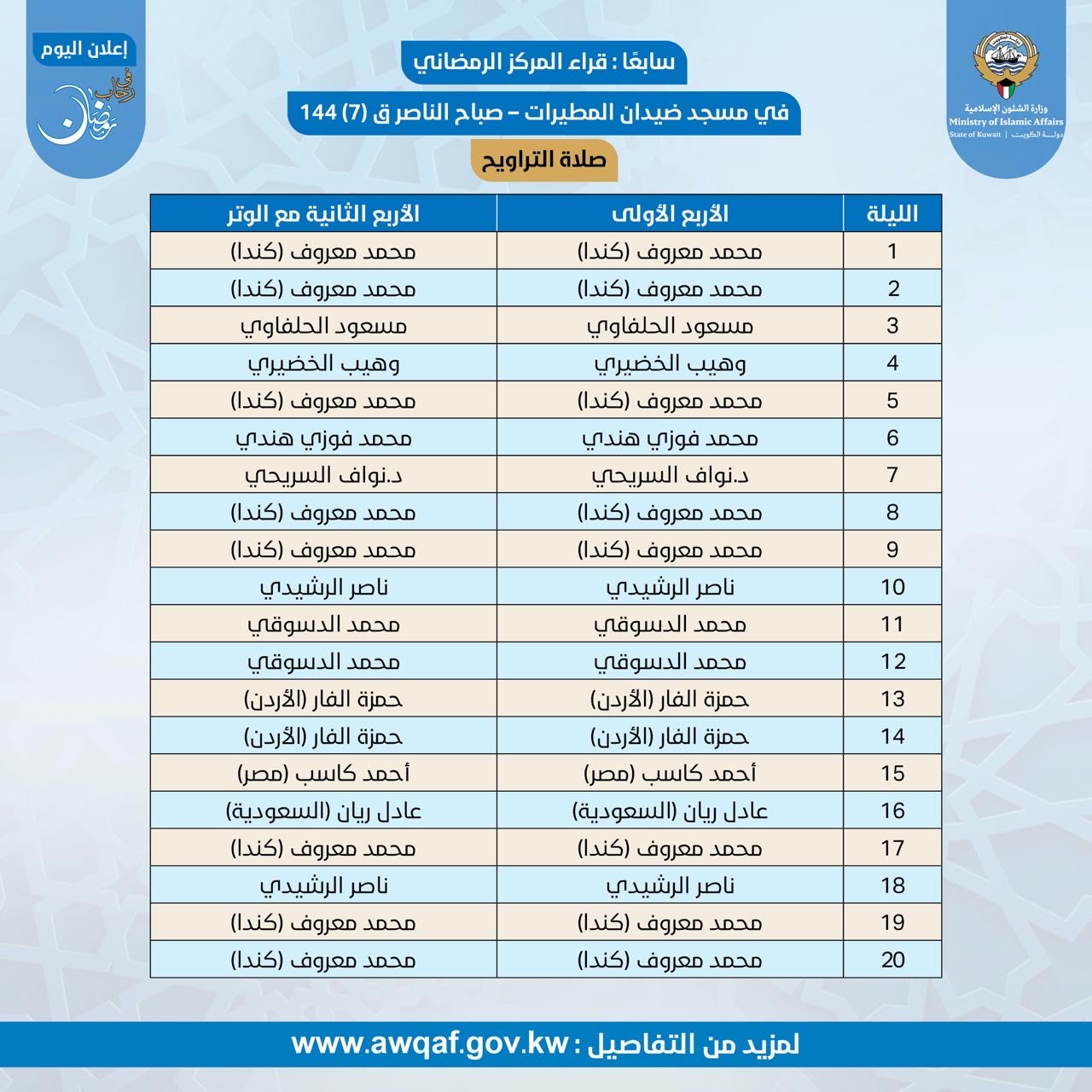 قراء مساجد محافظة الفروانية خلال شهر رمضان المبارك ١٤٤٦ هـ- ٢٠٢٥م